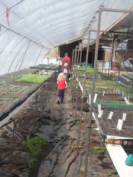 It sure was nice to see the rain today. I know that most people (myself included) would rather see sunny spring days but the land is quite dry for this time of the year. It looks like a wet week ahead which would be welcome from my selfish perspective. There should be some bunched red radishes from the greenhouse in the boxes this week.I am also looking at baby pac choi as well. It might be ready and it might not; wait and see. We will continue to have apple cider in the boxes for at least another month or so. After that it will only be available frozen for a limited time into the summer. When we start picking the new crop of apples in August we will start having it fresh pressed again. I have also decided to buy some local produce over the next few weeks to supplement my own production. This will include greenhouse grown cucumbers, white and baby portabella mushrooms, and maybe some greenhouse tomatoes. My intention is to prevent forcing CSA customers to live on leafy greens alone for the next month. I hope that this works for the majority of you. We are also looking at some of the options that we offer on our CSA. The option of putting the boxes on hold without penalty seems to be working well for most people. We are planning to change the custom ordering option. We do not want to eliminate it as an option but we will probably limit it to a maximum number of customized boxes per year. The intention of this option was to allow people to modify the box for special occasions, extra company, etc. The vast majority of people never use this option; it is only utilized by about five percent of customers. My brother the programmer is working to modify the website to track this. We will keep you posted as to what we decide to do (and we will not change it suddenly without notice in case some people want to opt out). The crops in the field are doing very well. Under the row cover all the greens are now up and looking healthy. The broccoli that I planted outside a couple of weeks ago is looking a bit rough after all the wind and that nasty minus eight degrees the other night. As I mentioned in an earlier e-mail, the idea of planting it so early was to gain bragging rights in the community. If it dies from the cold windy weather I will just quietly plant some more without telling the neighbors.